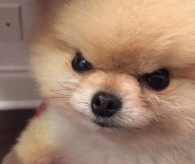 Apparently, this pup really wants to go outside. Or he saw a cat through the window and is dreaming of the chase. Either way, his solution was to make this unnerving face.