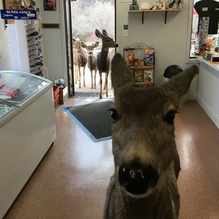 The deers have leveled up how to hunt for their food. Stores are now part of their hunting places.