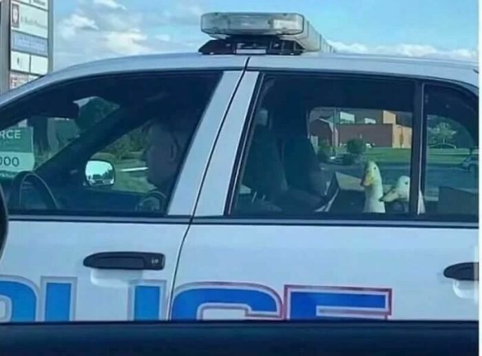 Did they peck this police officer with their beaks a little too much?