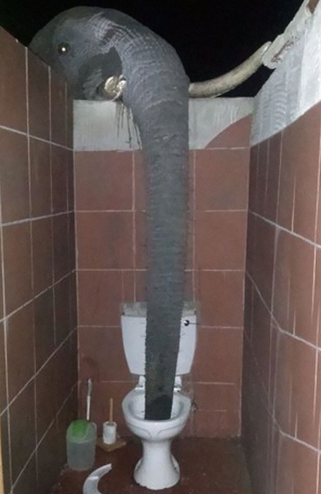 This elephant is thirsty and he will get water from anywhere his trunk can reach.
