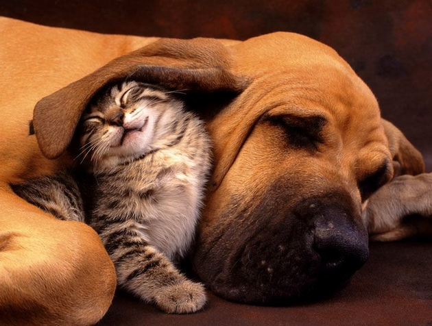 Not only do animals love humans but also non-humans. When an individual found a tiny kitten crying outside, she brought it in. This was the result…super sweet.