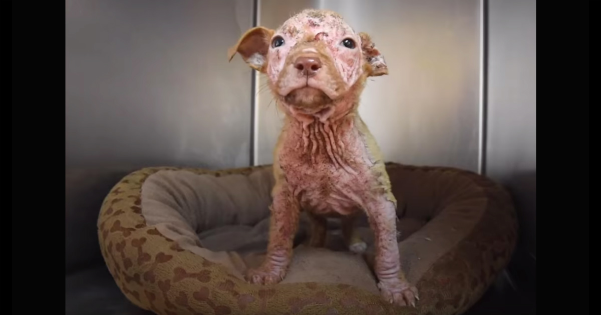 When Pixie Princess escaped from her “home” and wandered into a stranger’s yard, she was barely recognizable as a pitbull pup. All her fur was gone, and her tiny little body was covered in terrible sores and scabs.