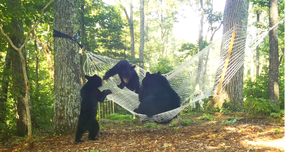 The two bears poke and prod at each other as the momma bear gives all the attention it can. It’s actually real sweet seeing how much the mother bear fawns on it’s young and is certainly worth a watch to see. But make sure you watch the hammock.
