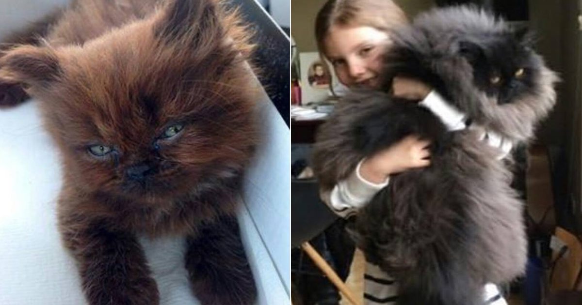 Brownie, the former sickly kitty, grew bigger and fluffier than anybody— least of all Justina— could have ever imagined!