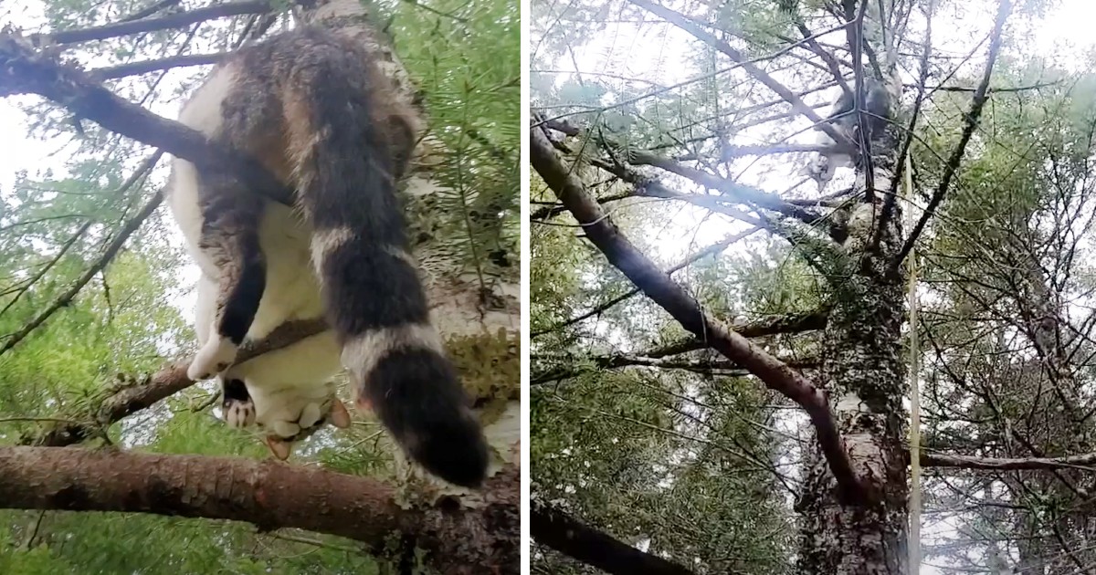Cats are good at climbing but not so much when it comes to going down. Good thing these two are here to the rescue.