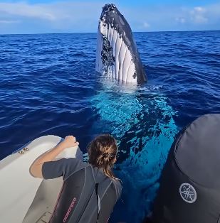 And while many are timid to get too close, a whale isn’t too shy in coming up to meet its visitors.