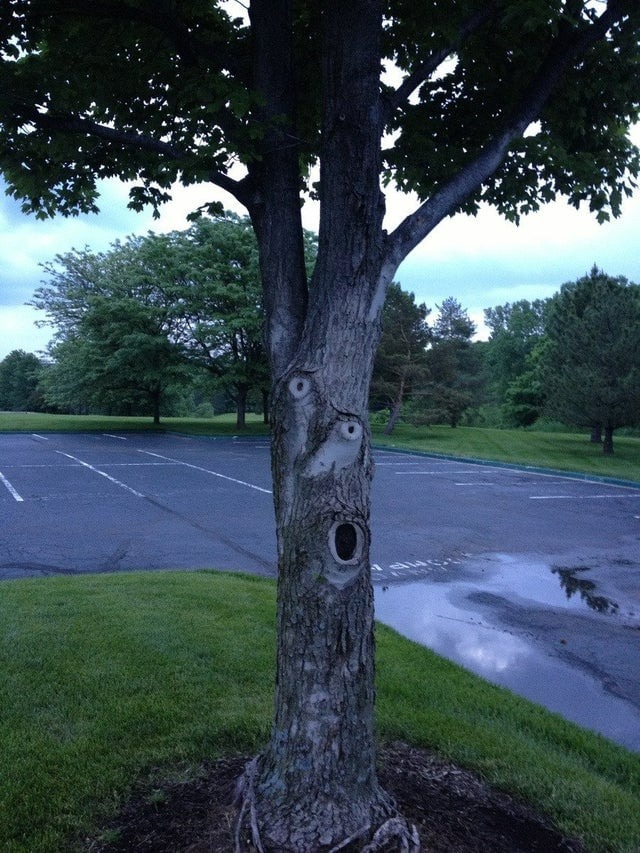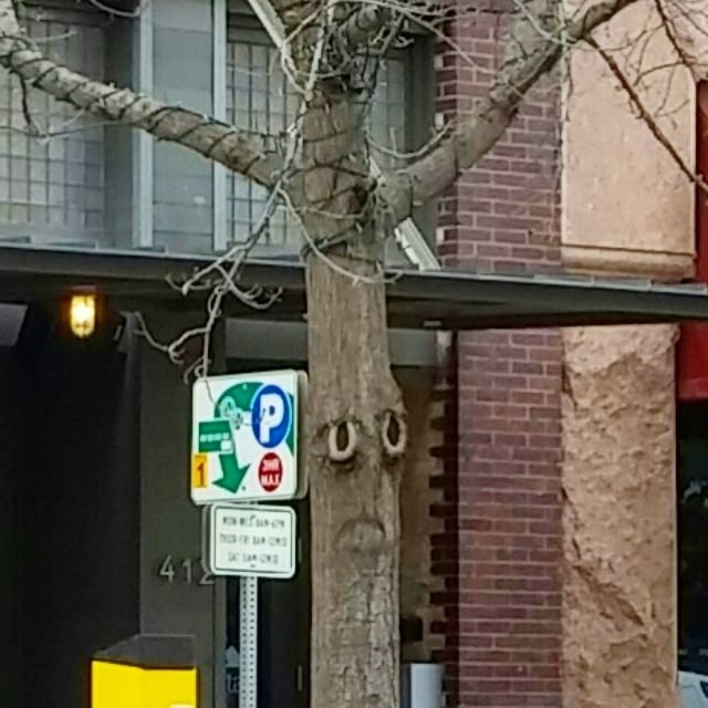 This tree has to be near a dog park — the expression on its face says, “Oh no, not again!”