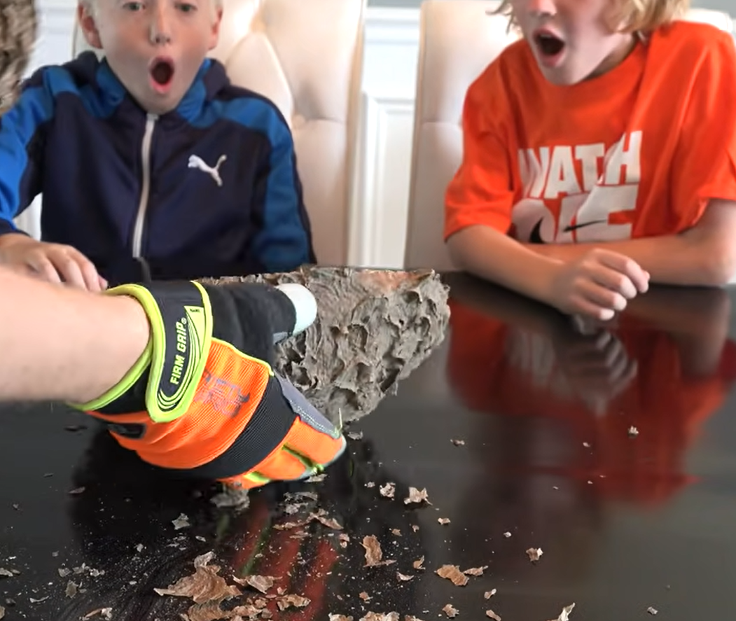 Dan – the father – introduces his son Lincoln who, in turn, introduces his friend Kai early in the clip. The dad and son duo start the video by explaining their curiosity for what might is hiding inside of a wasp nest.