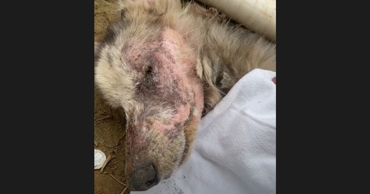 Laura Forma received a call from an old couple about a dog on their property. They said that the dog suddenly collapsed and fell to the ground. It wasn’t surprising though as he was terribly underweight and has scabs covering his body. His bones were sticking out like there’s no muscle between his skin and bones.