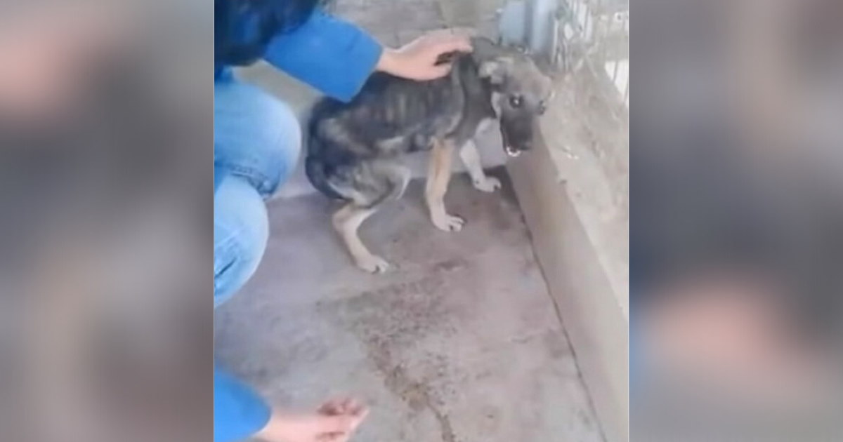 Knowing how to work with animals, the woman continues to pet Kayne with a loving approach. At first, he howls and cowers down. But after a short time, there seems to be a breakthrough and he slowly becomes more receptive to her touch.