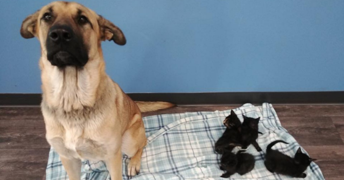 The lone dog that the driver originally thought they saw turned out to be a much different situation. The dog was curled tightly around a small litter of kittens. Incredibly, the dog wasn’t sleeping; it was protecting!
