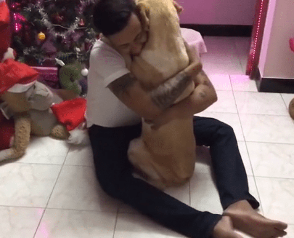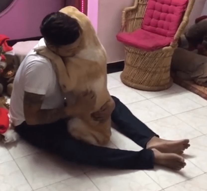 The man, for his part, looks peaceful and thankful, simply stroking Jack’s furry back and planting kisses on his head. In the video, you can see that surgery has left the pup with shaved portions of fur and set of sutures; at one point, I think I see a few tears in the owner’s eye.