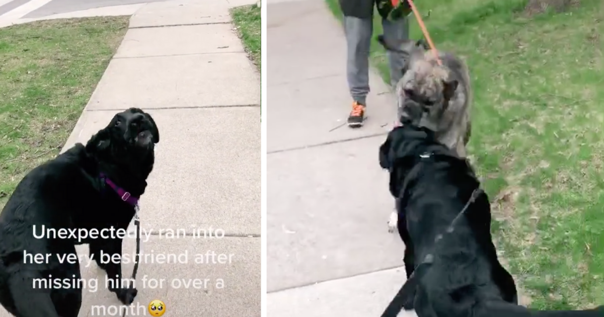 Stefani Maryn’s TikTok video of her black lab mix Samantha running into her pal while out on a walk in Hamilton, Ontario was posted just a little over a week ago but already has nearly 1 million likes and 4.2 million views!