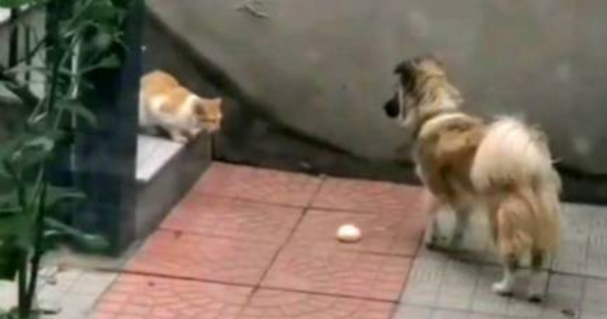 What Ms. Fu caught on video was no fight though – it turned out to be a generous and heartwarming moment between two animals that no one would expect to be friends.