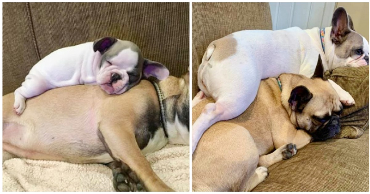 Although Frannie bears a lot of weight when Trixie sleeps on her, she tolerates it well. At least for a while. When Trixie’s weight becomes too much, Frannie will simply move to get her off her back. But even then, she’s super gentle.