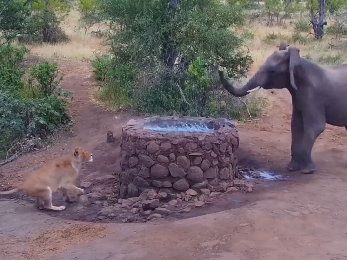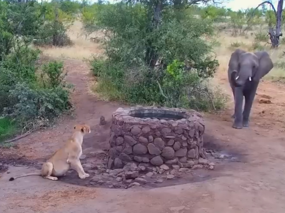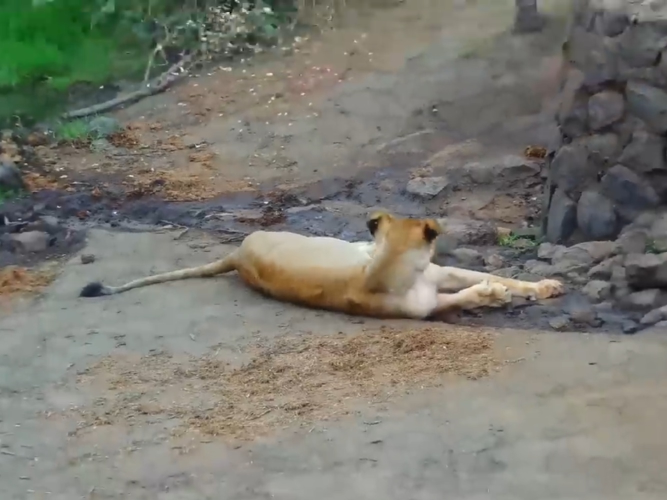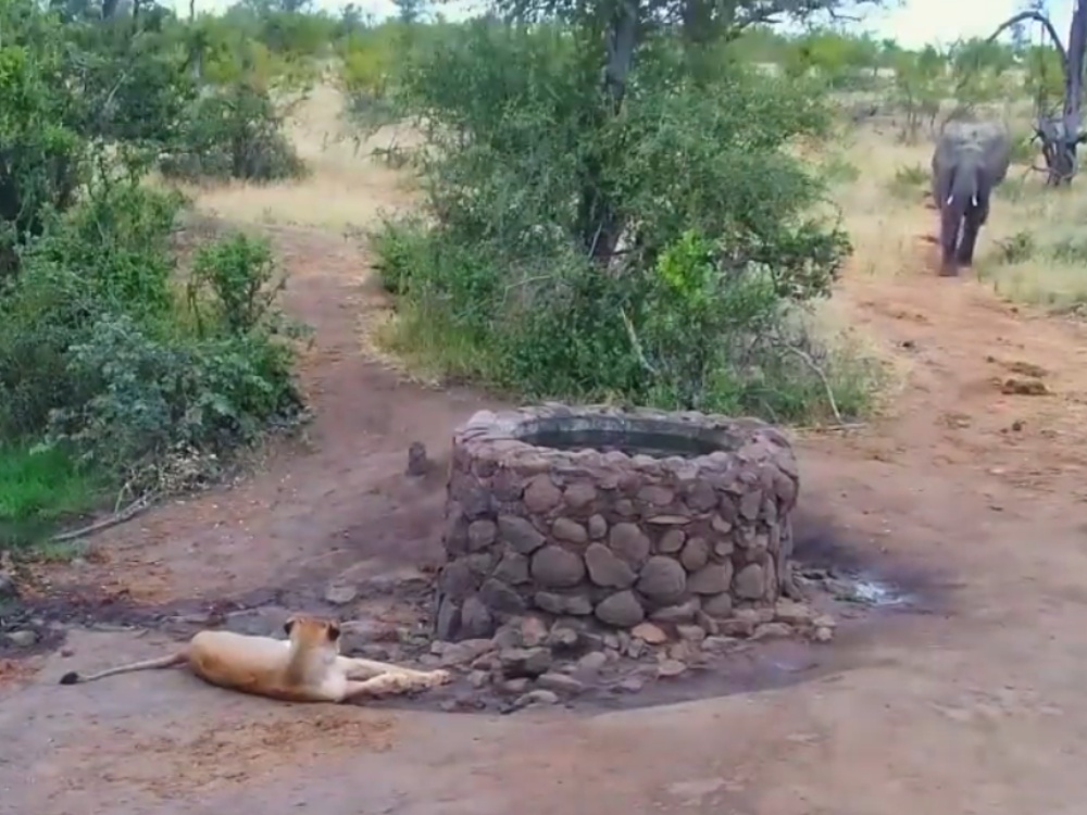 A lioness can be seen in this video sleeping comfortably beside a well.