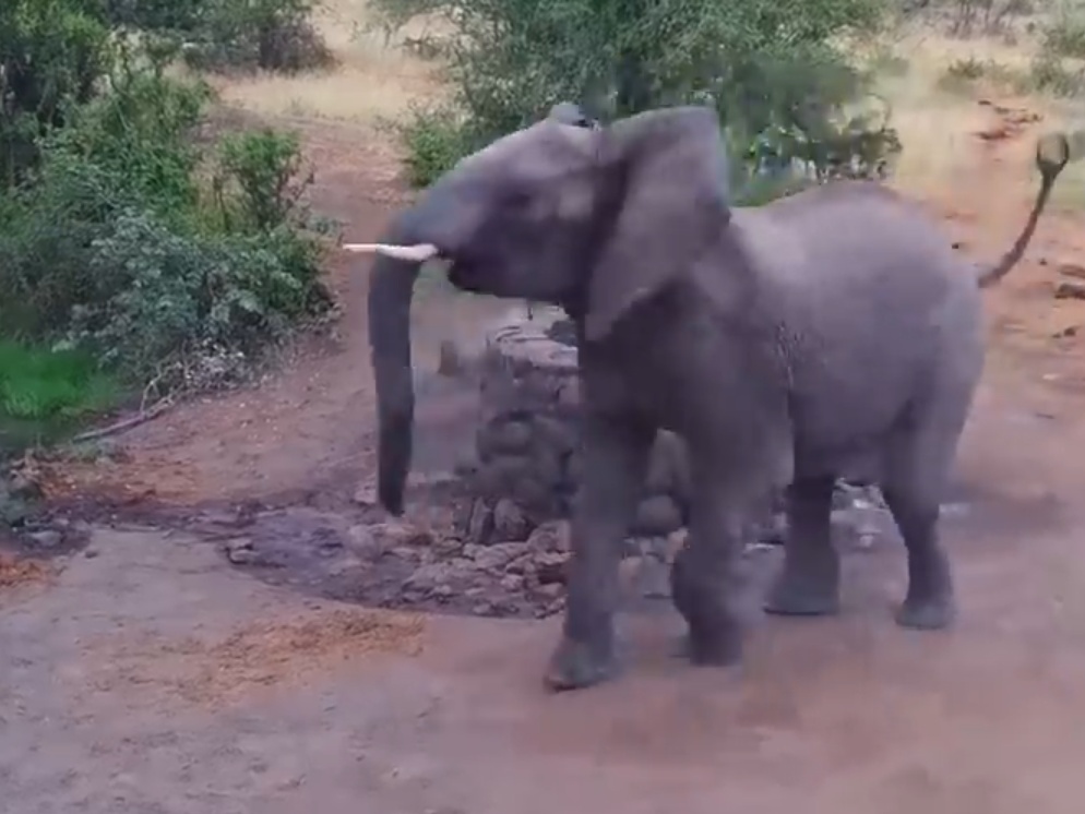 Watch how this juvenile elephant displayed dominance by doing something rather unexpected.