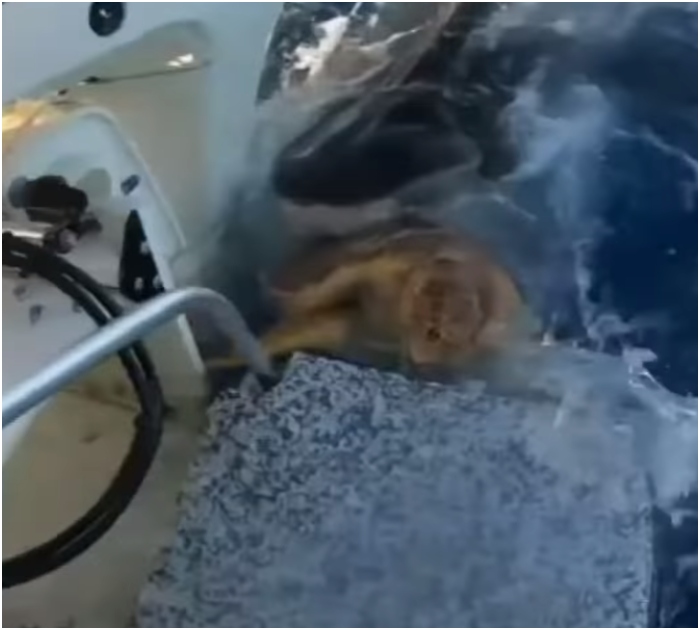They intervened, using their boat to rescue the imperiled turtle from the clutches of the shark.