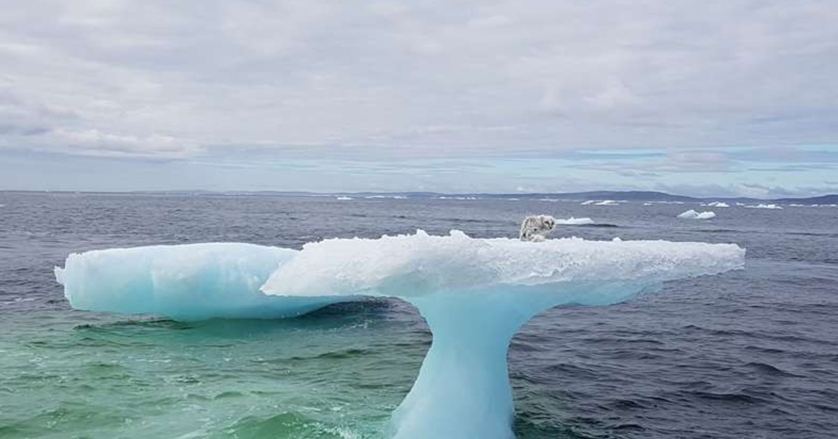 Atop a mushroom-shaped iceberg that was drifting through the sea was what at first appeared to be a baby seal. However, as the team got closer, they discovered that it was actually a terrified and starving Arctic fox.