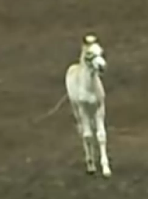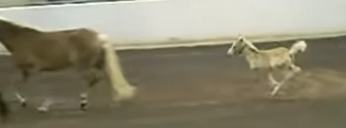 The trainer runs out into the arena while holding onto Blitz’s mom.