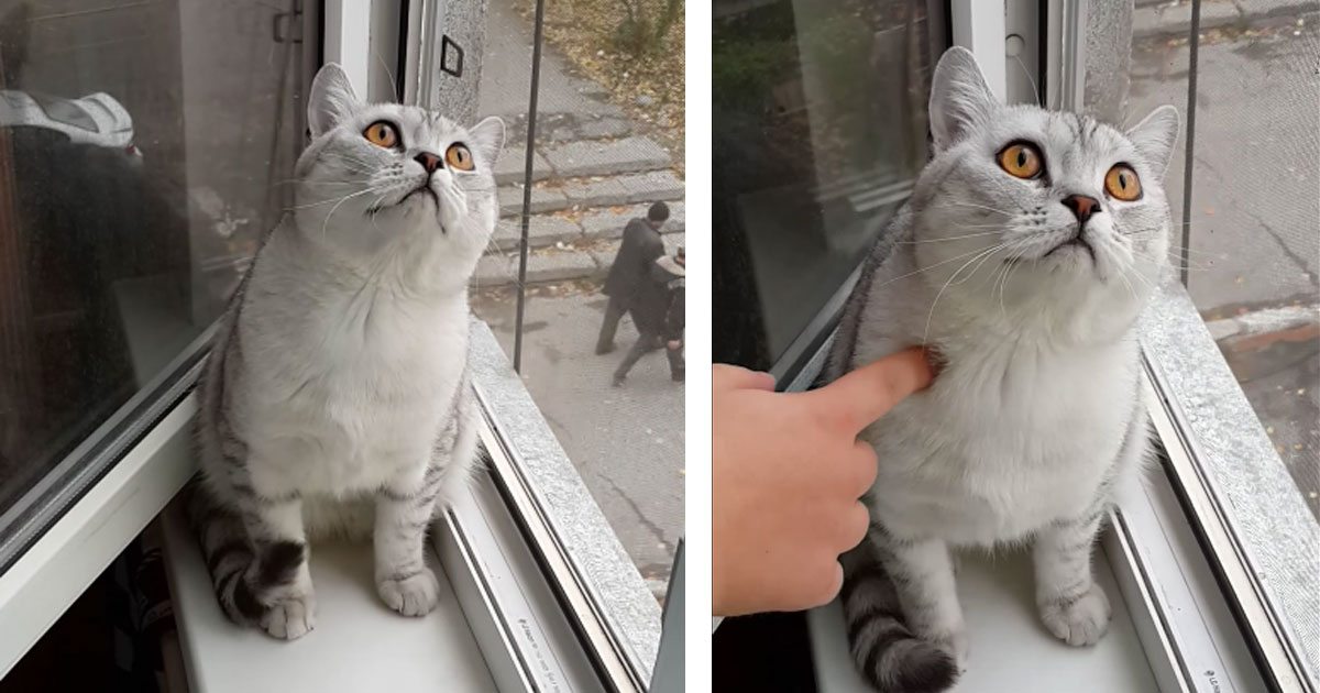 Not even his owners little pokes in the chest can stop this kitty from focusing. Big thanks to the amazing owners who shared their adorable (and possibly broken) cat!