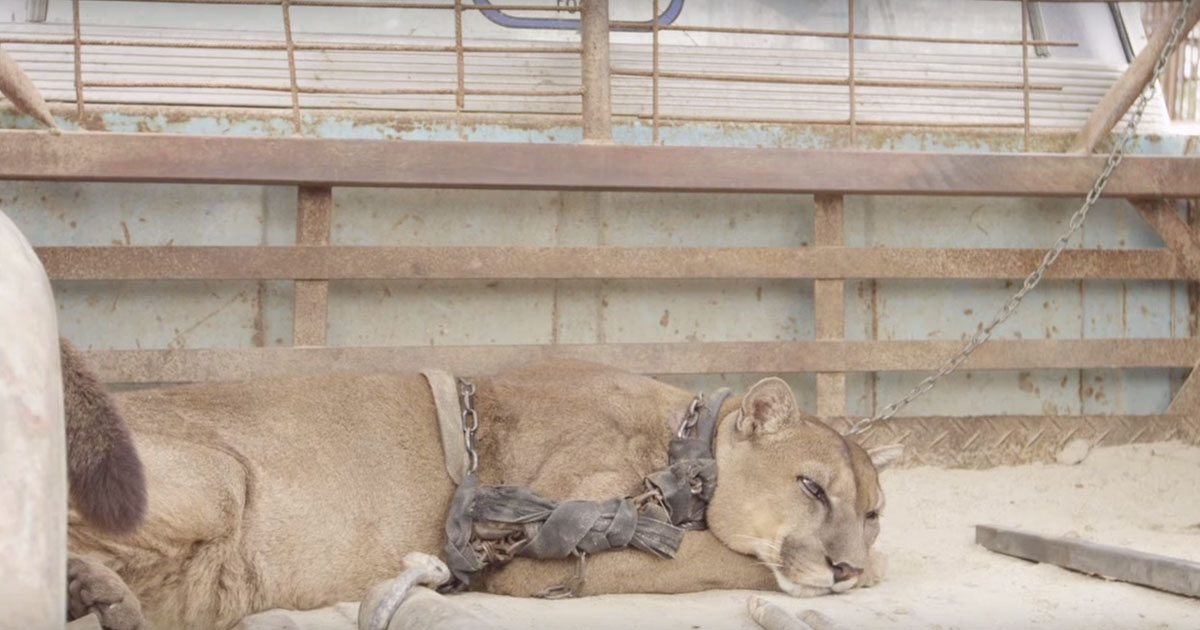 After 20 years of being forced to perform for a Peruvian circus, Mufasa the mountain lion was set free from his chains.