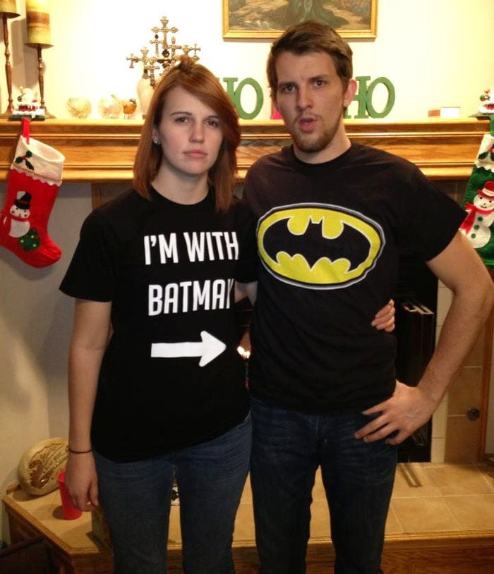 This couple’s shirt combo is both funny and practical!