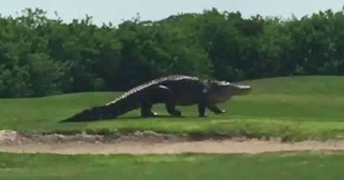 A giant alligator made its way across the grass! As the creature sauntered across the course, Charlie was terrified at the size of it. “That is the biggest freakin’ alligator I have ever seen in my life!” he exclaimed as he filmed the enormous reptile through his phone’s camera.