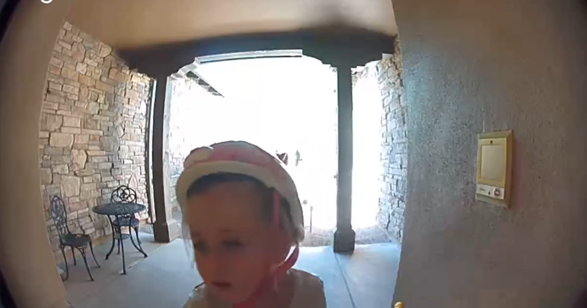 She knocks on the door and porch video captures every moment as the scared child looks over her shoulder almost as if expecting trouble to come bursting through the porch opening you can see.