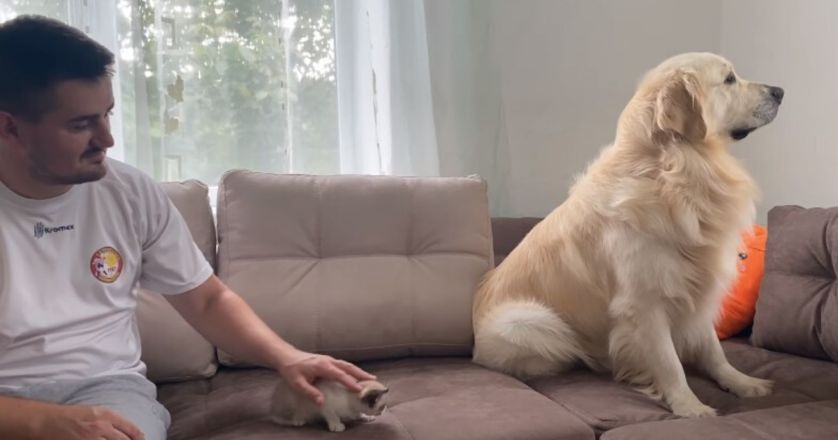 After some time, pets, hugs, snuggles, and tricks, they are finally able to get closer to one another. It just took some time for the friendly dog to warm up to the kitten. Maybe Bailey is afraid of losing his cuddle spot and is jealous of the cat! After a few more tries, they realize that Bailey is refusing to even acknowledge the presence of the kitten.