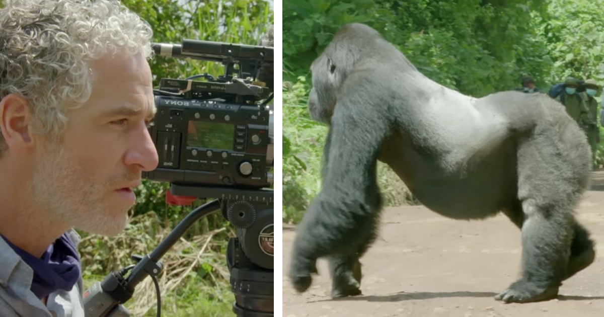 It may look like a small gesture from afar, but this gorilla didn’t know for sure that he could trust the group of people who had stopped the traffic for him. You can see the slight hesitation in the gorillas’ faces as they cautiously make their way across the roadway.
