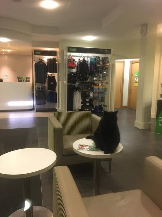 Every day, when this cat’s owner goes to the gym, she waits in the lobby until they’re finished.