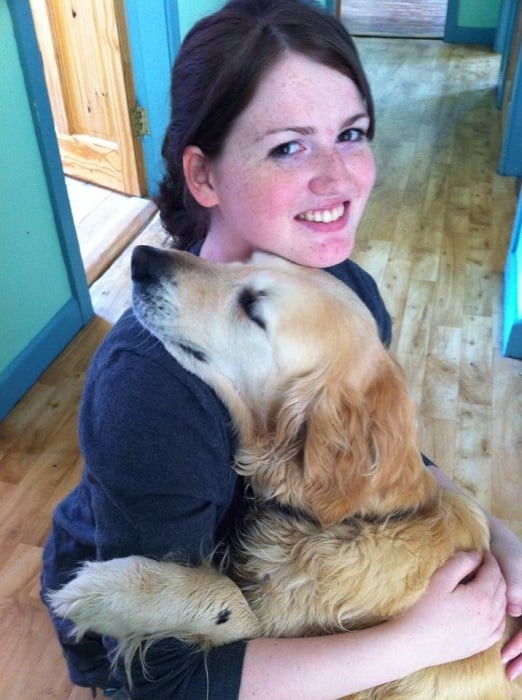 While his owner is smiling from ear to ear, the dog is practically melting into her.