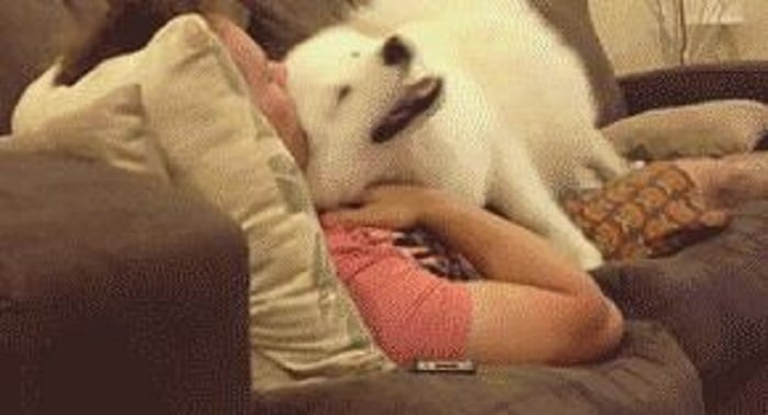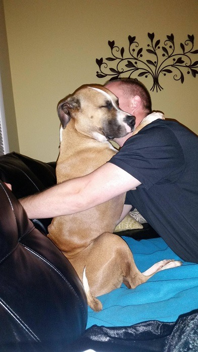 This man says his dog is just a big goofball, but by the looks of it, he takes one thing seriously—hugs.