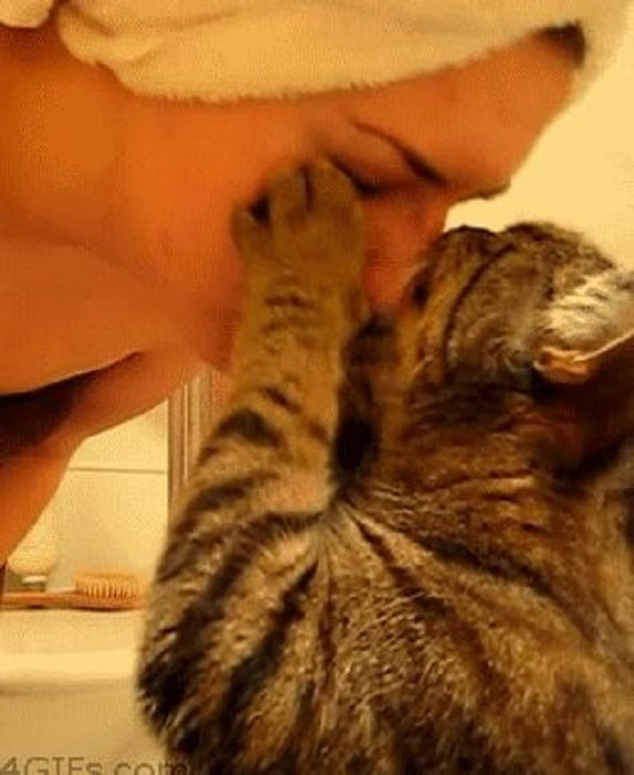 According to her owner, this kitty does this every morning at 5:30.