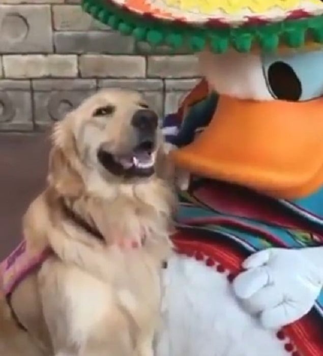 For this sweet dog, love isn’t just for humans and other animals—she’s got a soft spot for Donald Duck, too.