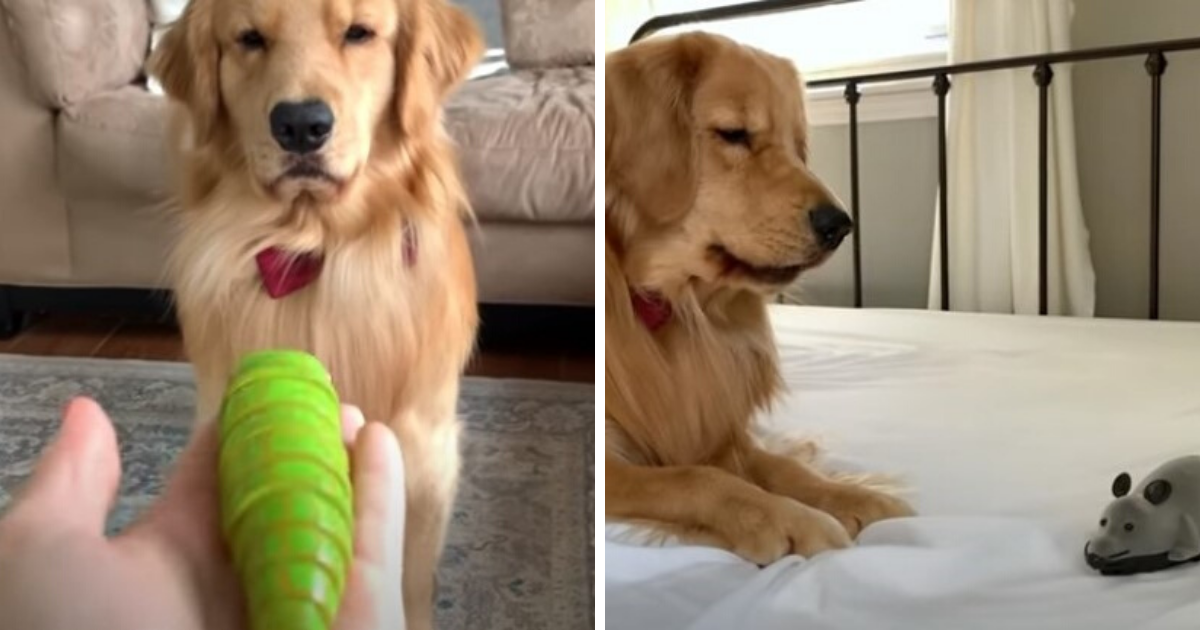 Tucker is a golden retriever who loves to play with new friends and new toys. His owner, Courtney Budzyn brings home new toys for Tucker to react to and the results are hilarious! Watching a dog play and respond to the toys is just about as innocent as it gets, and people love it.