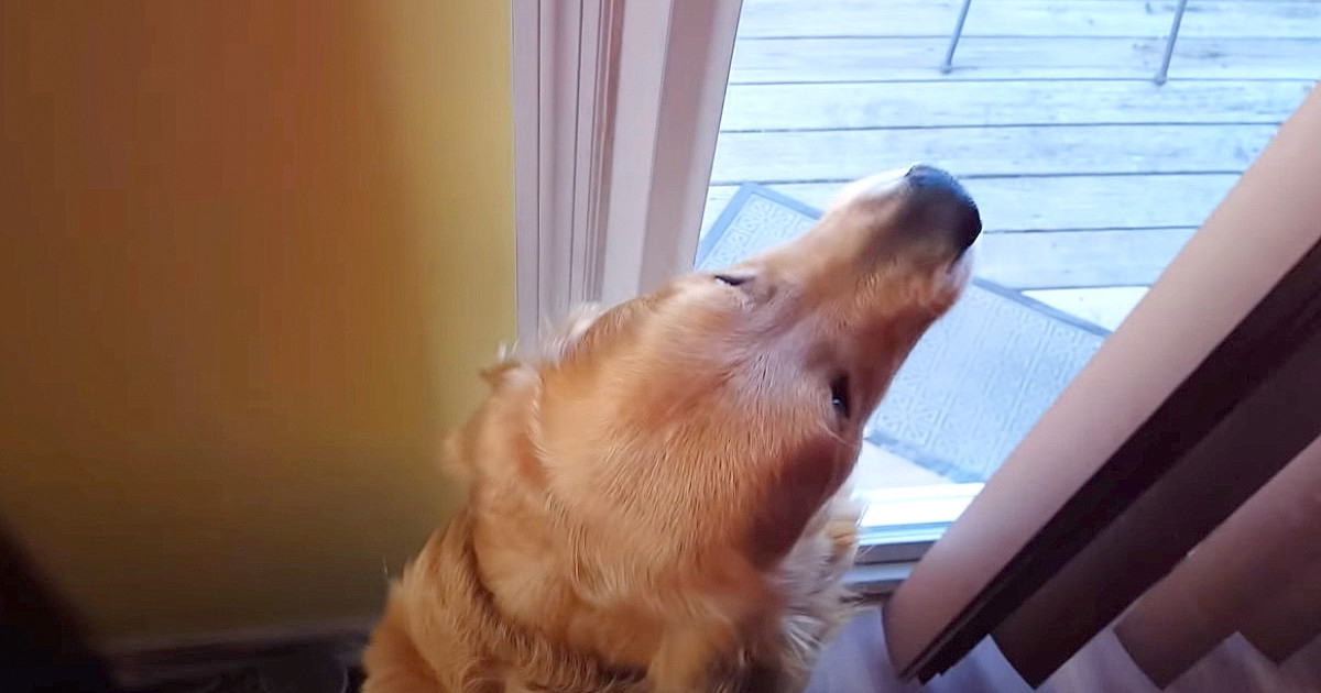 Dad’s keys jingle while he unlocks the front door, and for a lot of dogs – it’s a sound that sends them into a frenzy. Once Jesse opens the door though, the Golden Retriever isn’t even there to greet him. Wait, he saw him coming!