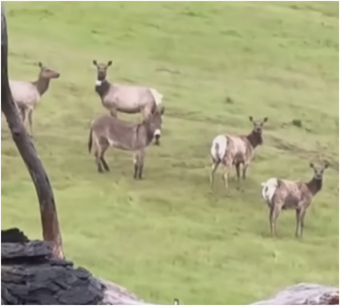 Max Fennell, a hunter in Auburn, California, was out in the wild when he encountered a peculiar sight: a donkey moving with a herd of elk.
