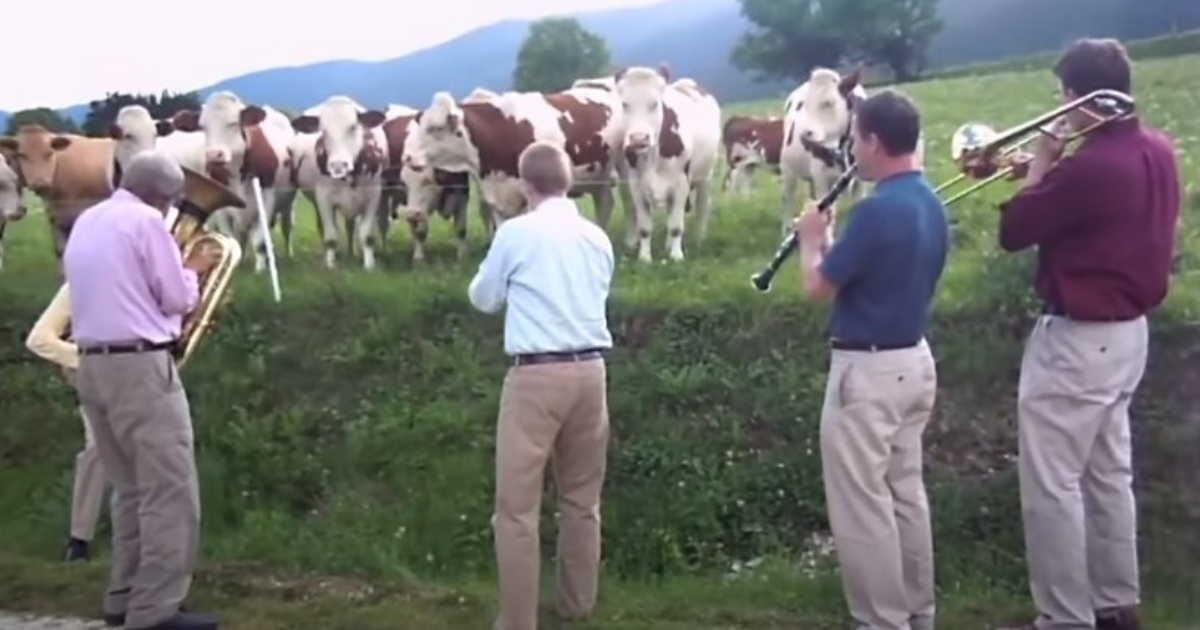It seems the theory is proving to be true, with a tuba player and a trombone player in the mix. The cows make for a great audience. This isn’t even the first time this has happened, either! There are other examples of farmers and their cow buddies listening to music.