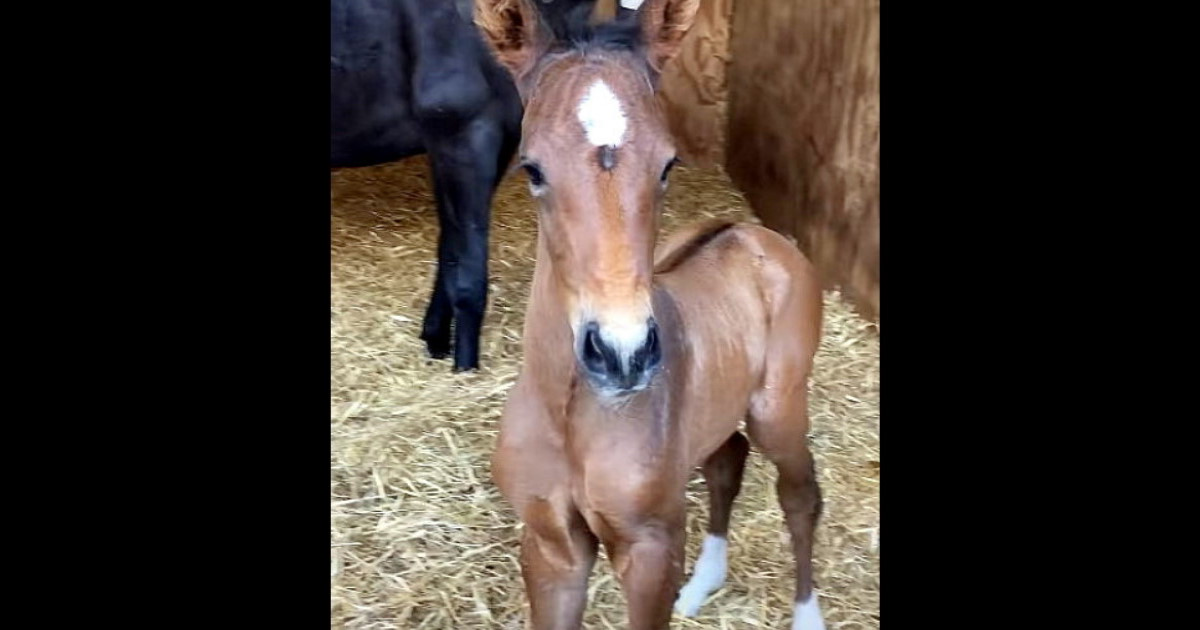 This lady decided to have a chat with a foal named Lola. At the sound of her name, the pretty filly immediately gets up with a happy neigh.