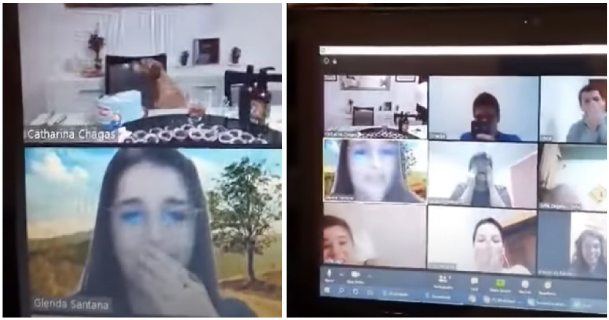 Because of the quarantine, Catharina couldn’t celebrate with friends in person. So they held an online meeting and she planned to virtually serve everyone a slice.