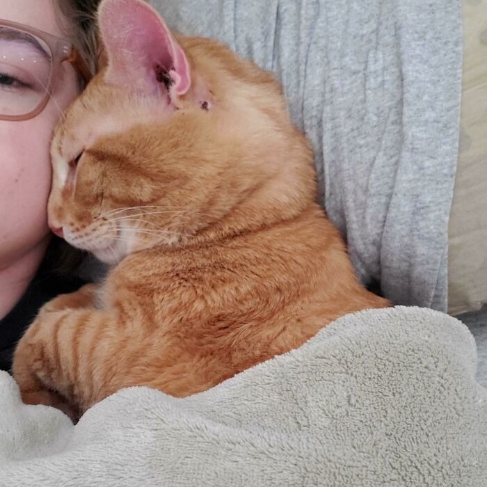 It’s hard to find an adopter for an animal with health issues but when they do find one, they are the most loving humans to these animals. This cat has ear issues and requires regular ear cleaning. His humans don’t mind doing it for him and this is the look of gratitude he has for them. He might look like he’s mad but he’s actually thankful.