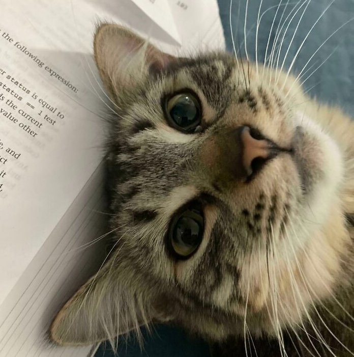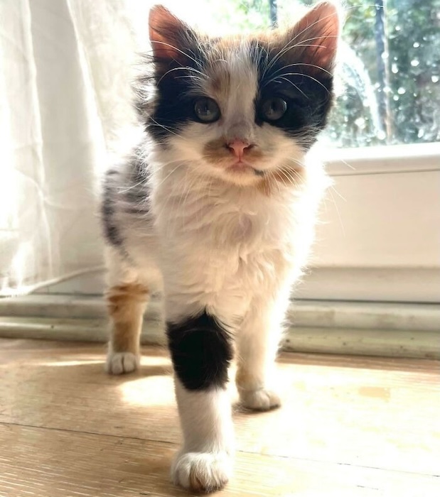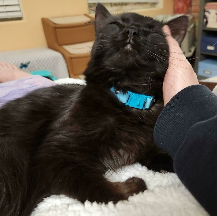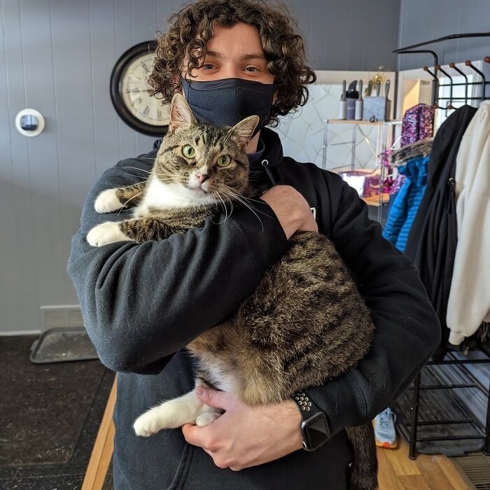He finally adopted his own kitty and named her Billie. She was named after a billy goat because of her headbutts.