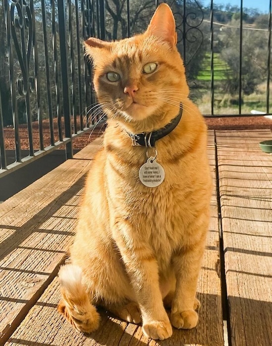 They went to the shelter to adopt an orange cat. Just then, a woman came in with her orange cat. Her cat couldn’t live with her anymore because her dogs were terrorizing him. They named him Frank.
