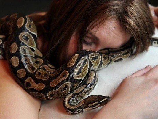 Every single evening, the woman would sleep with her pet python sprawled around her body.