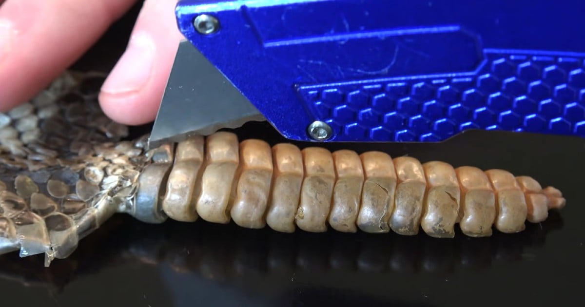 Now watch what happens when David takes a box cutter and opens up the rattlesnake tail. What they find inside is mesmerizing!