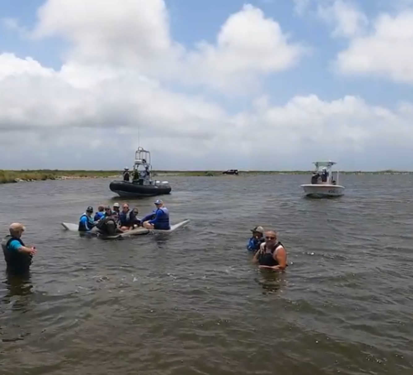 The hurricane, which struck in late August 2021, had pushed them into this pond near Grand Isle, Louisiana, leaving them stranded far from their natural habitat, the Gulf of Mexico.
