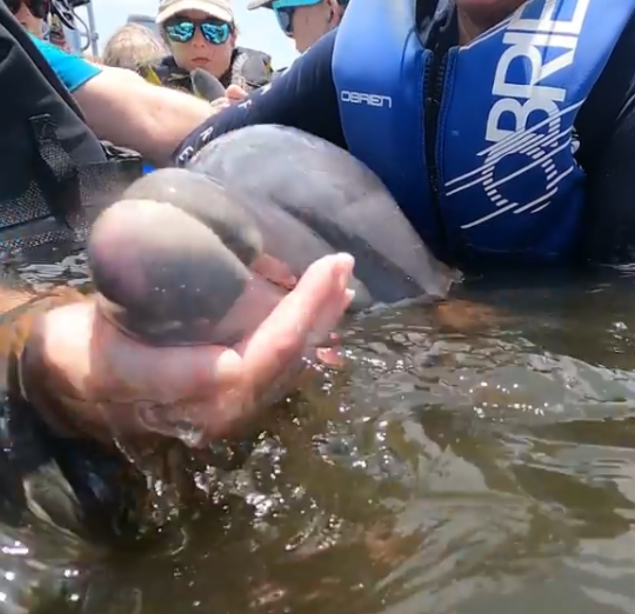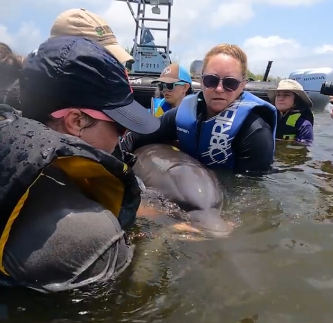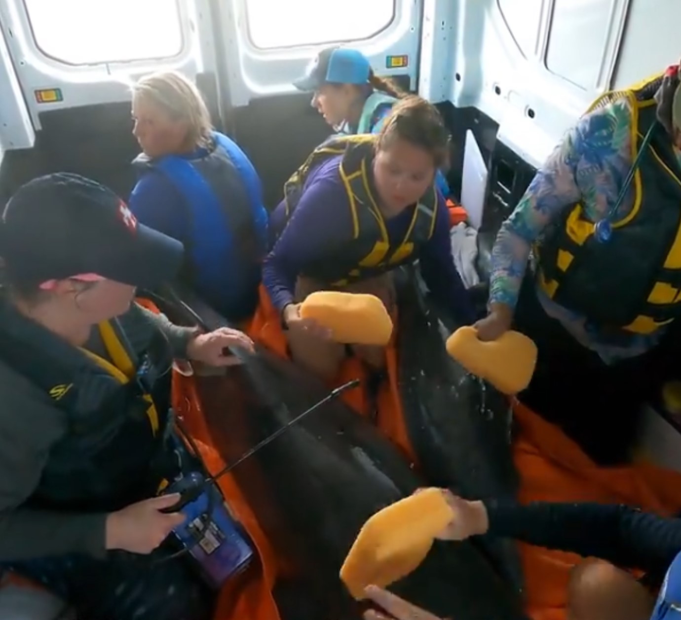 The operation was delicate, requiring the team to gently capture the mother and calf, ensuring minimal stress and discomfort to these marine creatures.