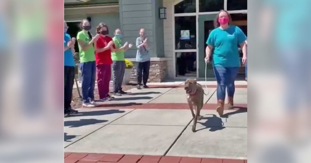 So they lined up at the entrance to give this adorable dog a standing ovation as he marched out the doors of a place he called home for a year. Big Mac deserved all of it!